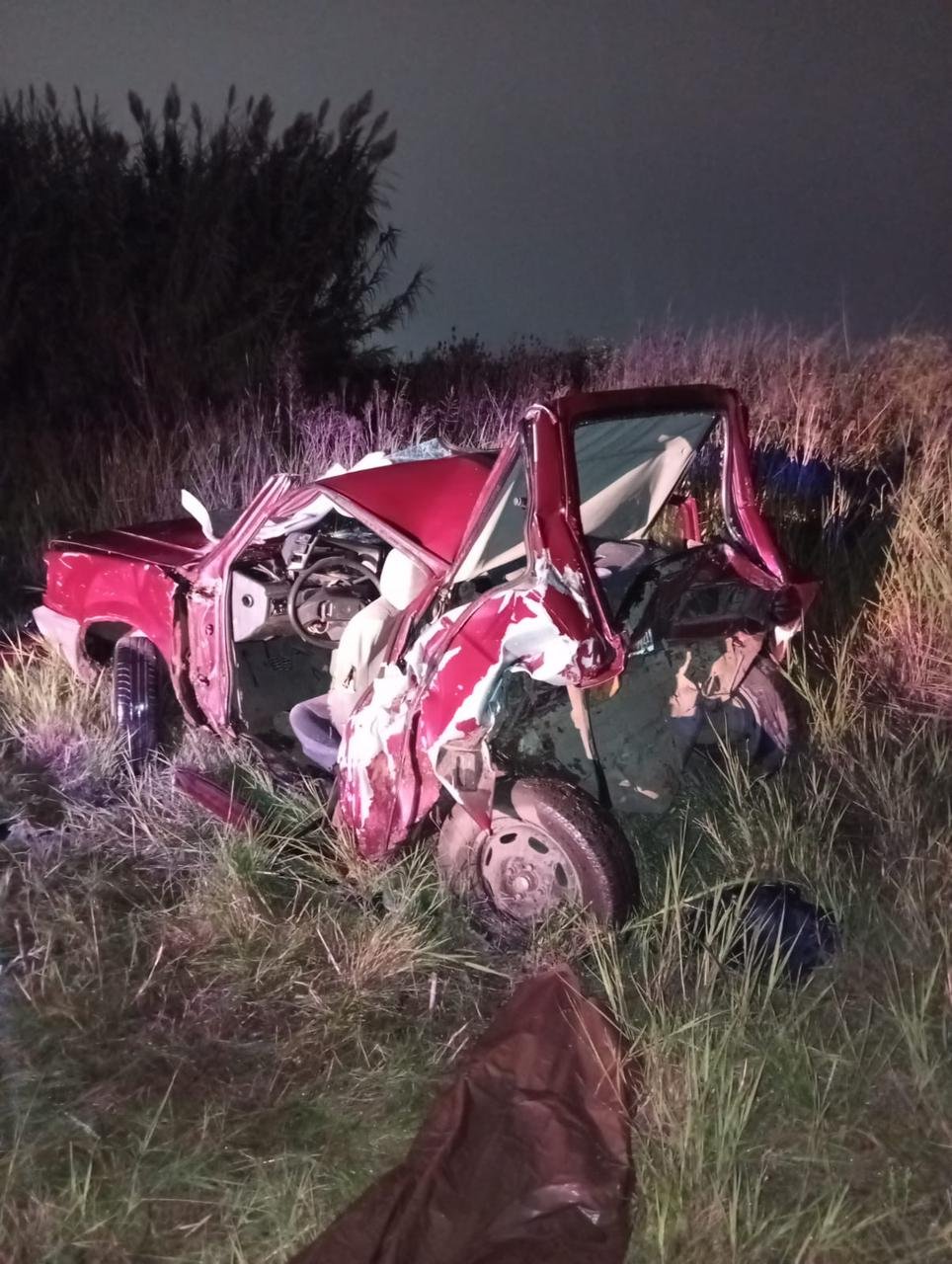 Al arribar, los efectivos encontraron una importante cantidad de vehículos detenidos a la vera de la ruta y, a pocos metros, sobre el campo del lado sur, un automóvil Volkswagen Gol color bordo con severos daños. En el interior del vehículo se hallaba la víctima, identificada como Matías Nicolás Rolón, quien se encontraba atrapado.