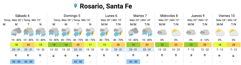 El informe del Servicio Meteorológico Nacional (SMN) no es alentador para los próximos días. El organismo prevé que las probabilidades de chaparrones y tormentas aisladas se mantengan vigentes durante: