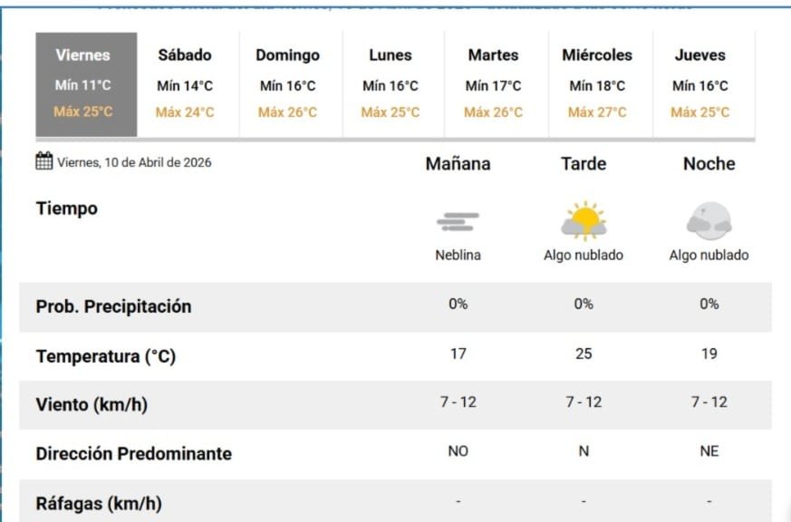 Para este viernes 10 de abril, el Servicio Meteorológico Nacional (SMN) anuncia una jornada en donde tendrá al sol como protagonista nuevamente, luego de días de estar cubierto.